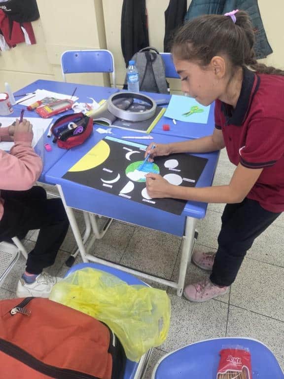 Okulumuzda Fen Bilimleri öğretmenimiz Nazik Yağcı Aydın, öğrencilerimize gökyüzünü sınıf ortamında keşfetme fırsatı sundu. “Gökyüzünde Komşularımız” ve “Ayın Evreleri” konularını uygulamalı bir şekilde işleyen öğretmenimiz, öğrencilerin bilimsel meraklarını canlı etkinliklerle destekledi.